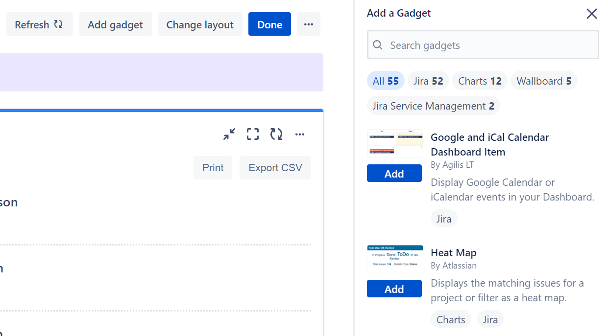 The app adds a dashboard gadget that becomes available to be added to Jira dashboards. Access dashboards from Jira’s main menu. The picture below refers to the Jira Cloud instance, but the steps are the same for Jira Server/Data Center.