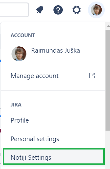 To start using Push/Desktop Notifications app, go to "Notiji Settings", located under user options (click user avatar in the top-right corner to access it).