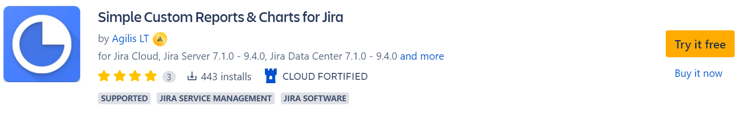 Visit the marketplace listing - https://marketplace.atlassian.com/apps/1218888/simple-custom-reports-charts-for-jira and click the "Try it free" button