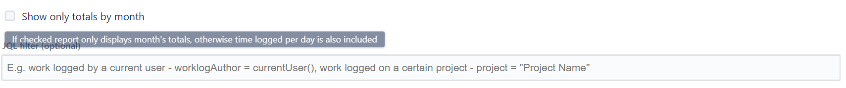 If "Show only totals by month" is checked the view only displays a single line with aggregate per month, instead of the full calendar with separate days.