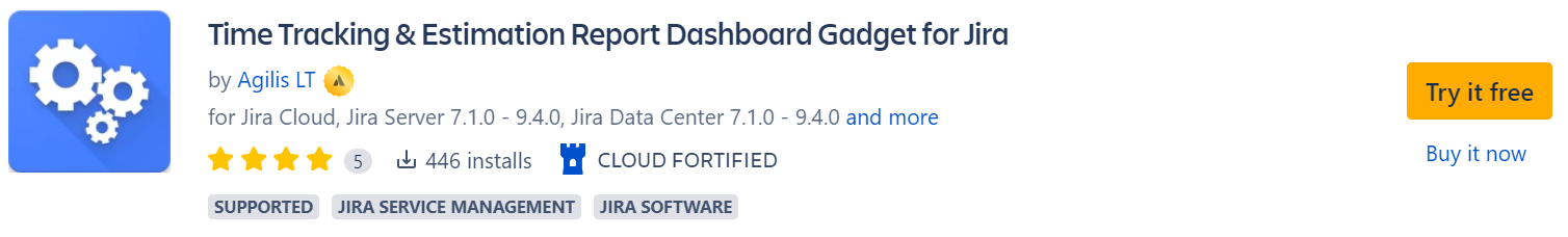 Visit the marketplace listing - https://marketplace.atlassian.com/apps/1219703/time-tracking-estimation-report-dashboard-gadget-for-jira and click the "Try it free" button