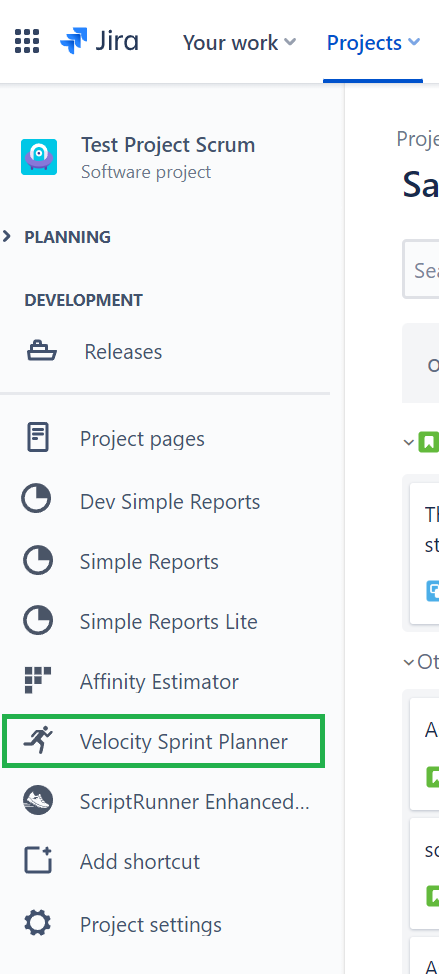 Velocity Sprint Planning & Tracking app adds a menu item to your Jira software space.